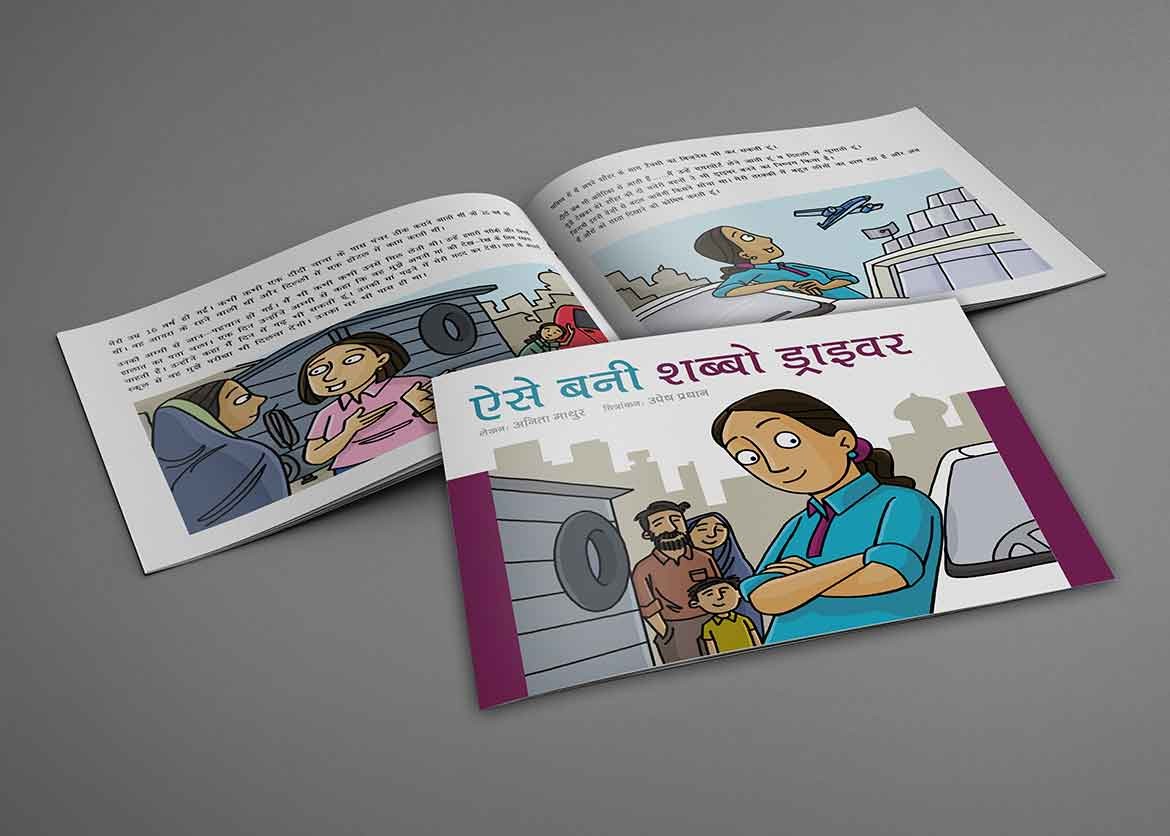 Communication, Illustration, StorybookAzad Foundation‘s key Women on Wheels programme empowers women with minimal economic and social capital to become professional commercial drivers. To aid their enrollment drive, a number of collateral were produced by us.
